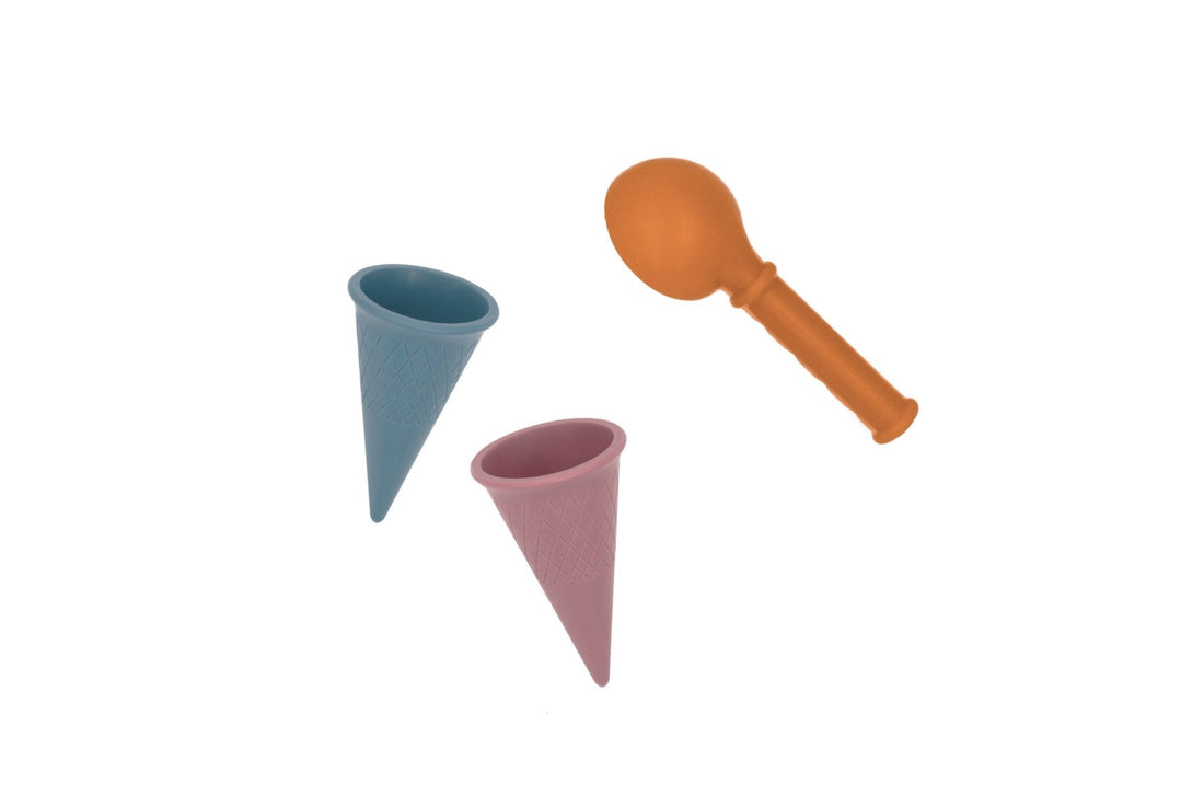 L'ensemble contient les jouets de sable les plus populaires. Une grande cuillère à farine, un seau pliable de 3 litres, un grand tamis et un râteau - même le jouet à glace tendance est inclus ici.